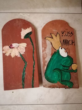 Beschreibung: Kunst auf Tondachplatten! Wir malen Kunstwerke auf diesen tollen Untergrund, ganz frei mit wetterfesten Farben. Die fertigen Platten könnt ihr dekorativ drinnen oder draußen platzieren. Kleine Künstler ab 4 Jahren sind eingeladen! Tanja freut sich auf euch.